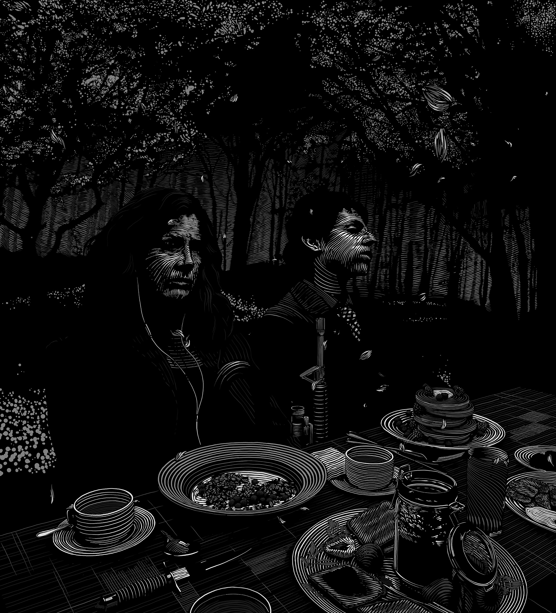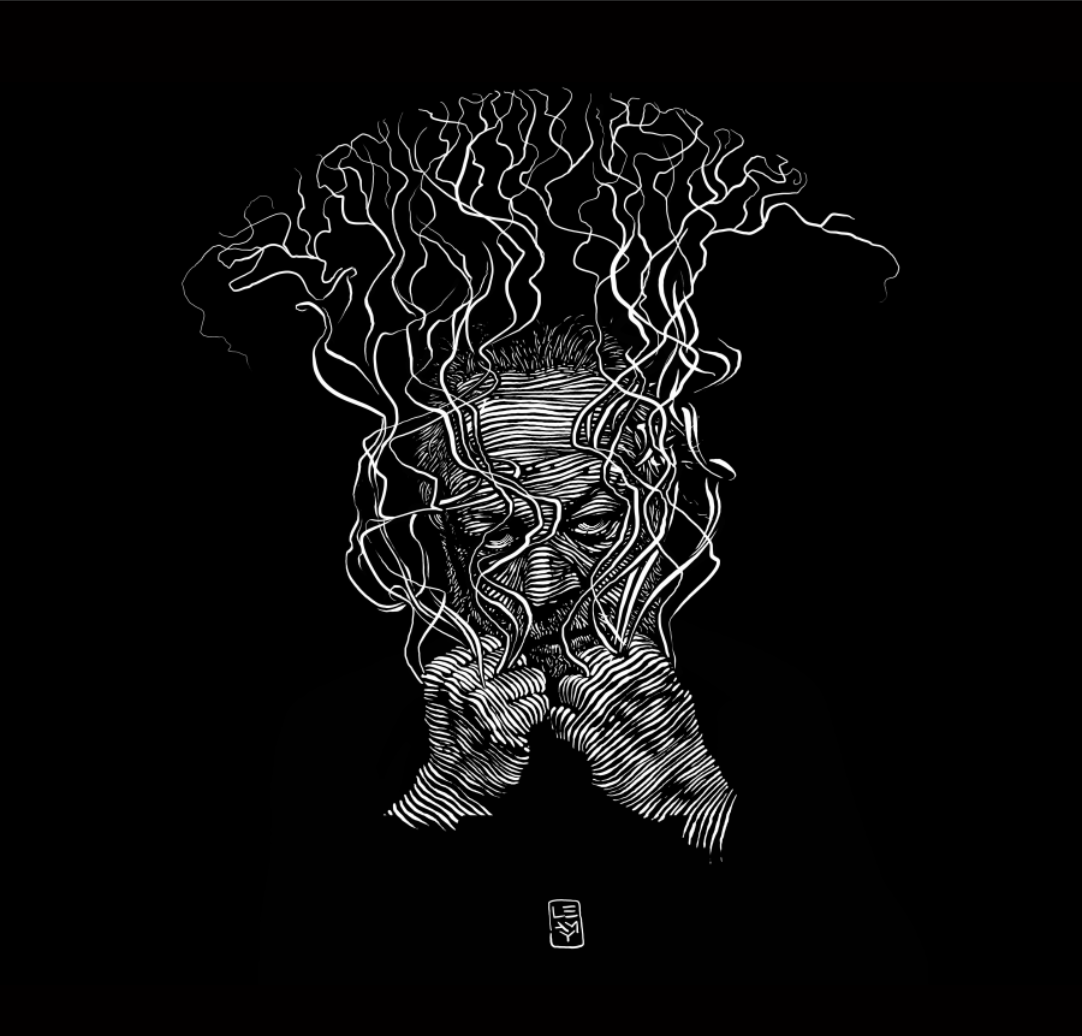 Most of these were created using portraits surreptitiously snapped on the subway. Except for the great Ricky Jay. He probably never needed the subway. Because magic.