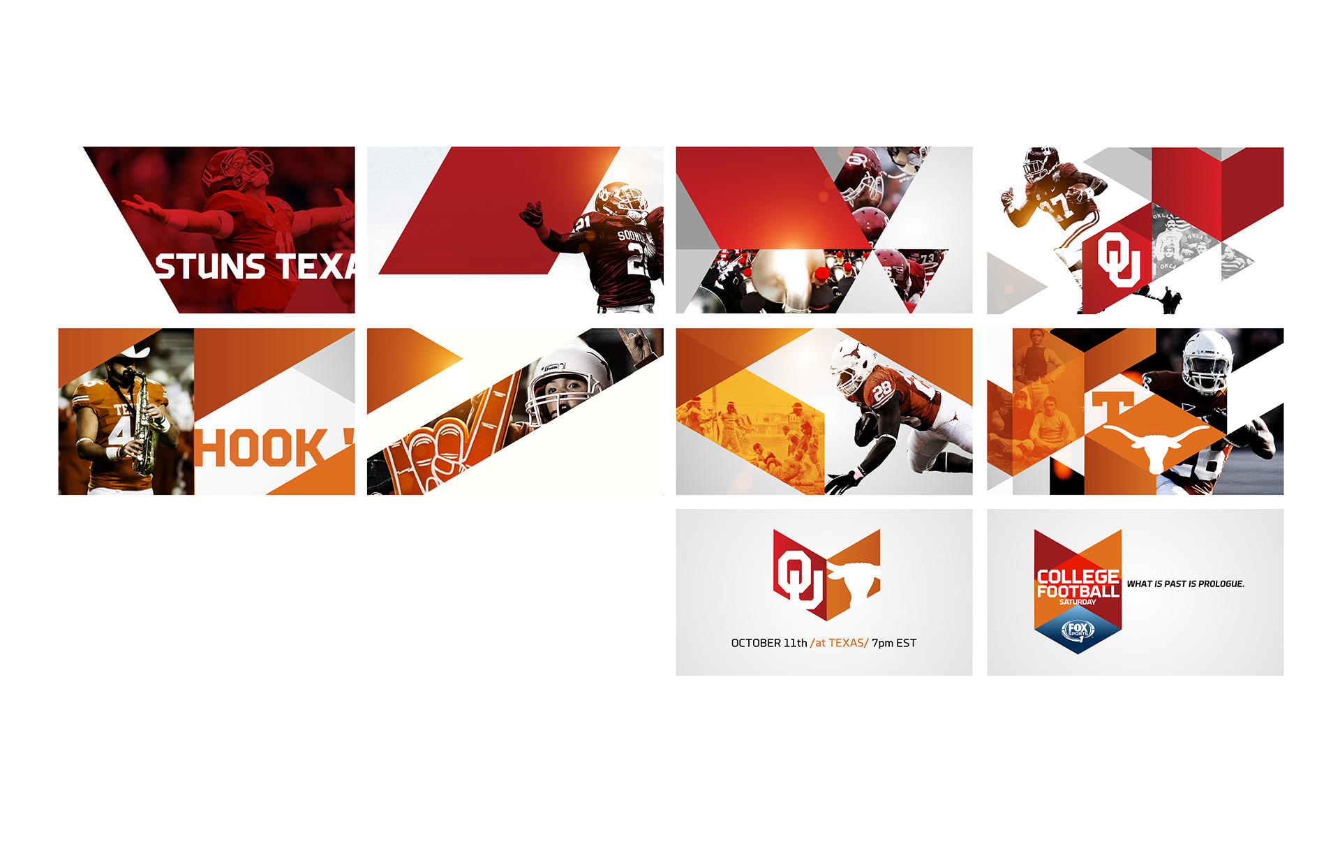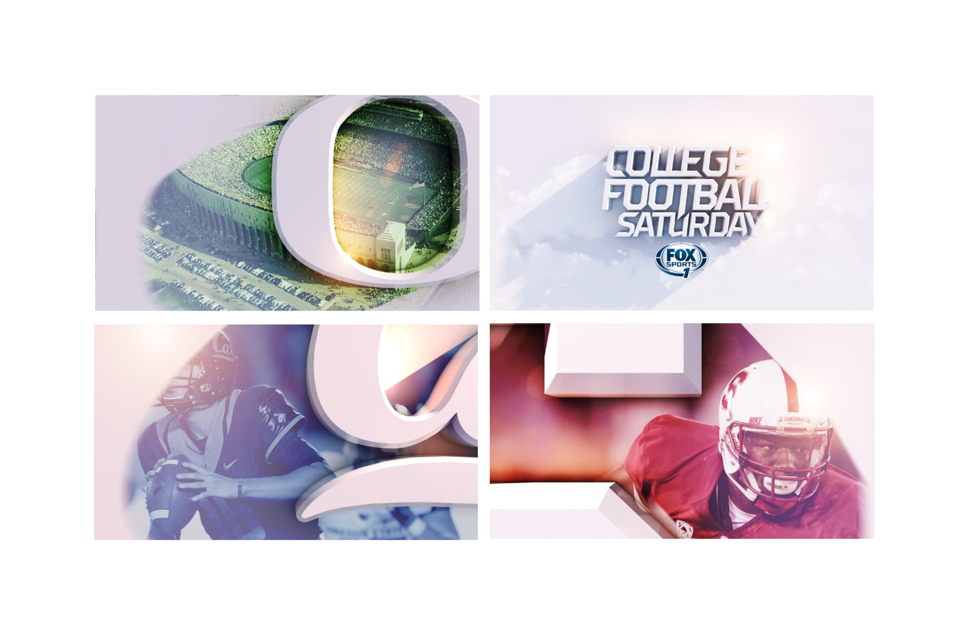 Pitch treatments for Fox Sports College Football Saturday. The first approach was the winner. Done at Sibling Rivalry.